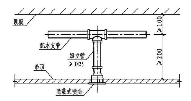 1.不做吊顶的场所,当配水支管布置在梁下时,应采用直立型洒水喷头